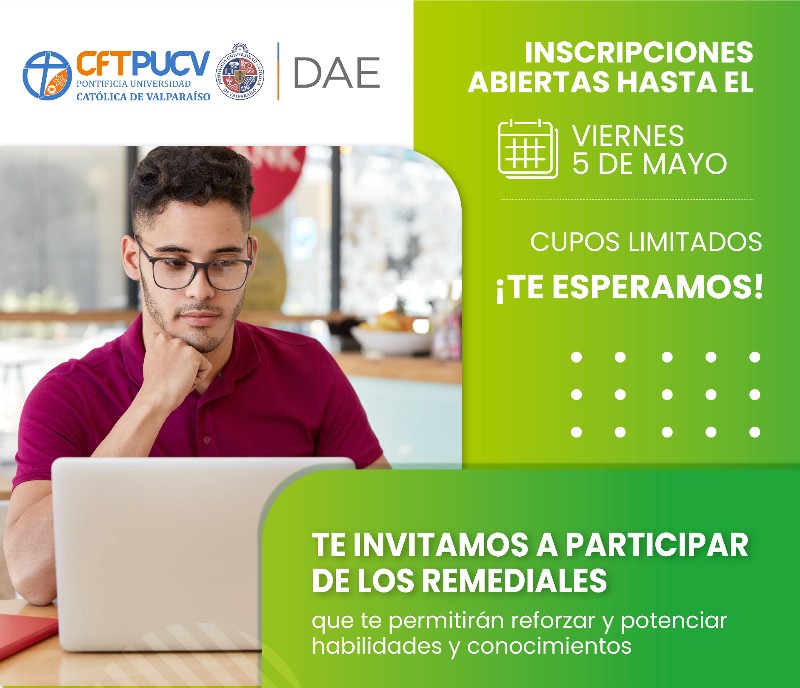 El Departamento de Asuntos Estudiantiles (DAE) ha comenzado a implementar junto a INJUV el chat en línea destinado a entregar asistencia, contención psicosocial a todos los estudiantes CFT PUCV, independiente de su edad, este canal funciona con profesionales expertos y es abierto a la comunidad, por lo tanto, cualquiera puede acceder a él. Si la situación es urgente, el profesional se encargará de derivar al estudiante al CESFAM, un consultorio, u otra entidad más cercana a la ubicación del afectado. Leer más